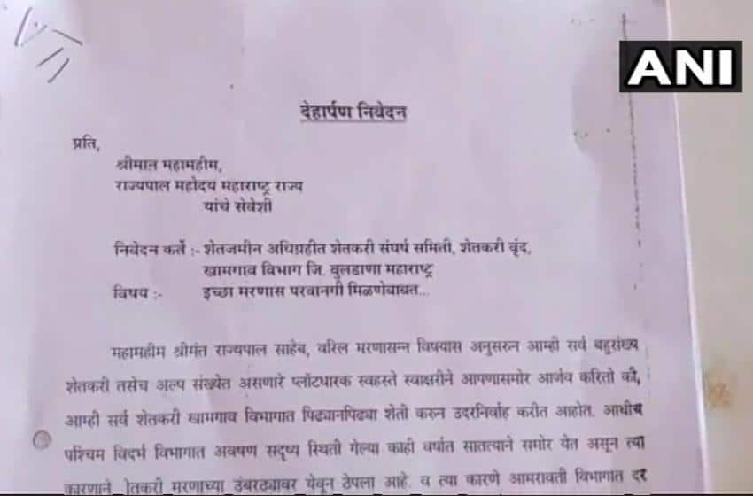 News agency ANI reports that the farmers from Amravati division in the state have also written to the SDO. The farmers are asking for euthanasia as they have neither received remunerative prices for their crops, nor have they been given “adequate compensation” for land acquired by the state for the construction of a highway.