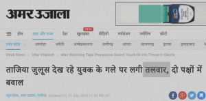 It stated, “At around 6:30 in the evening during a swordplay, a sword wielded by a young man slashed vishal’s throat, who was standing across the street. -translated”. Incidentally, Amar Ujalain its article did not report the statement by Deoria police.