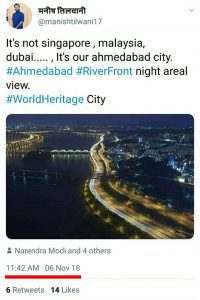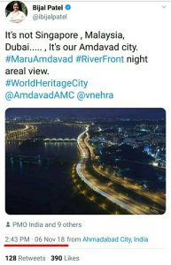 In a major embarrassment for Ahmedabad Municipal Corporation, the Mayor of the city has tweeted a picture from Seoul as Sabarmati riverfront. On November 6, Ahmedabad Mayor Bijal Patel tweeted an image purportedly of Ahmedabad Riverfront with a message, “It’s not Singapore , Malaysia, Dubai….. , It’s our Amdavad city. #MaruAmdavad #RiverFront night areal view. #WorldHeritageCity @AmdavadAMC @vnehra”.