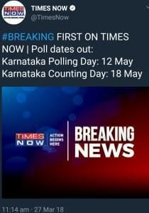 Karnataka Counting Day: 15 May pic.twitter.com/zlGCDflY0E— TIMES NOW (@TimesNow) March 27, 2018