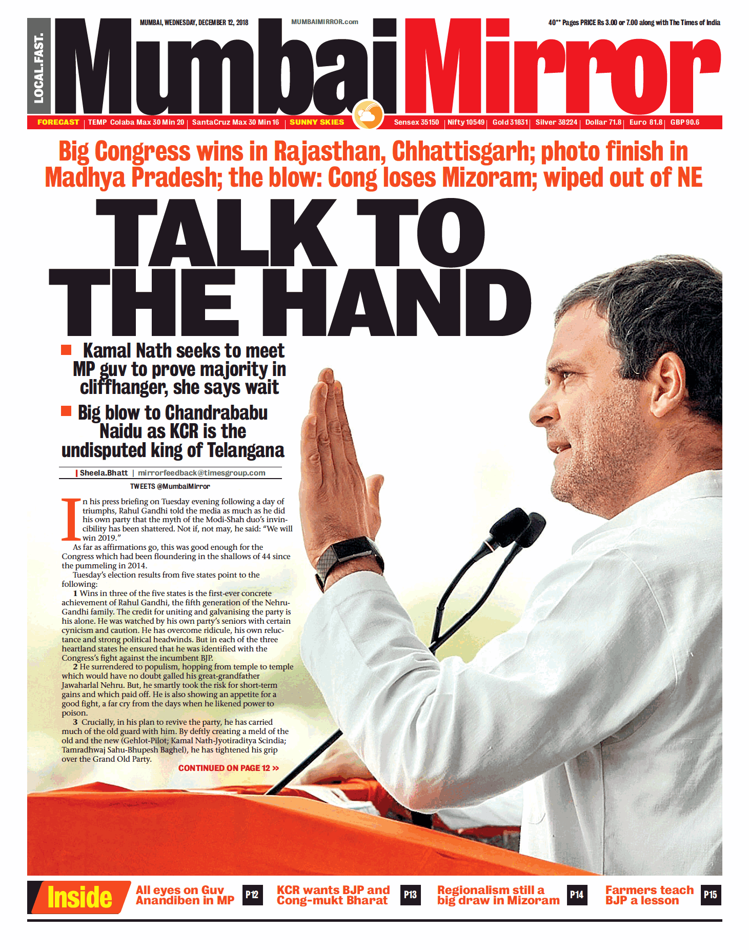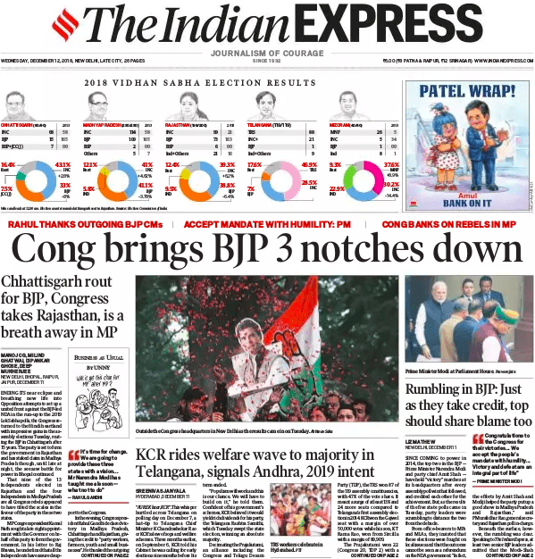 BJP’s setback and the resurgence of Congress made for some interesting headlines. On December 12, 2018, major newspapers across the country reported the assembly election results in unique ways. However, almost all of them gave Congress president Rahul Gandhi his due.