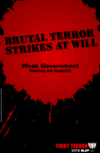 Mr. Jaitely proceeds to advise the principle opposition party, on not trivializing matters of serious national concern. “Do not trivialize a serious national concern on terrorism as has been done by the Congress Spokespersons in the past two days”, he says & yet just a day after the 26/11 operations in ended in Mumbai, the Bharatiya Janata Party had tried to capitalize on the gruesome terror attacks in the Delhi assembly elections, by issuing full front page advertisements, depicting splattered blood stains.