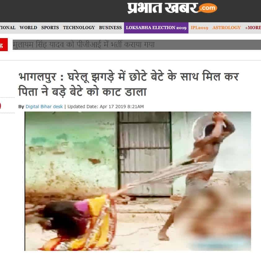 Before BJP Bengal leader Kalyan Chaubey deleted his tweet, several users had pointed out in the comments that the video was not from West Bengal but from Bhagalpur, Bihar. Alt News corroborated this information with local media reports. The video depicted an incident that took place on April 16. A father, along with his younger son, hacked his elder son to death with a sickle, reported Prabhat Khabar