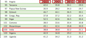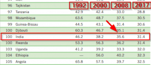 GHI ranks/scores are based on a plethora of factors and comparison of previous years’ reports does not arrive at an accurate conclusion. This is because a country’s deteriorated ranking does not necessarily imply a fall in its index score, and vice-versa. For instance, India’s GHI score in 2017 was 31.4 and its current score is 31.1. Even with the 0.3 point improvement, India’s rank came down three places. This can be attributed to various factors, including a better performance by other countries.