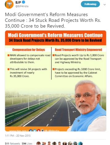 A photograph of a highway in Poland was used by BJP, on at least two occasions, to showcase Indian roads.