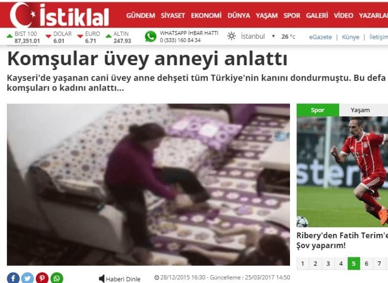 Alt News broke up the video into multiple frames using InVid. Upon reverse-searching one of the key frames on Yandex, multiple articles from 2015, related to the video sprung up. According to these reports, the incident had occurred in Kayseri, Turkey. According to Istiklal, “In Kayseri, a stepmother would mercilessly beat up her two children in the absence of their father. After neighbours complained, the father installed CCTV cameras in the house due to which the incident came to light.” (translation).