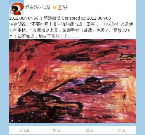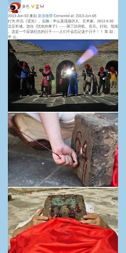 Artists’ performance. Shared on June 3, 2013 and censored on June 6, 2013. Image from Weiboscope.