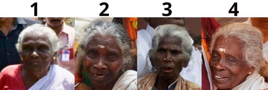 All four women might seem alike because of their old age and white hair. A closer look, however, reveals apparent distinctions in physical features. Alt News has juxtaposed photographs of the four women for a clearer view. The second woman was photographed with BJP’s K Surendran and the fourth, with Shashi Tharoor. The third elderly woman is the same who could be seen embracing Rahul Gandhi. We have chosen a different photograph of hers from the images tweeted by Congress for ease of distinction.