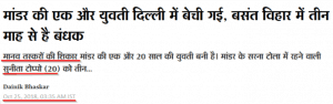 On October 25, Dainik Bhaskar reported an alleged case of human smuggling where a 20-year-old woman from Jharkhand, Sunita Toppo, was sold to a family in Delhi under false pretences of a job. She was the third such victim from Ranchi’s Mandar, per Dainik Bhaskar.
