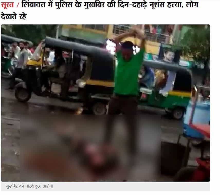 With a simple keyword search on Google, Alt News found that the video doing rounds on social media is unrelated to incidents cited in the message. The footage depicts a separate incident that also took place in Gujarat. Dainik Bhaskar had reported on June 19, 2019, that Imran Sha alias Imran Golden was allegedly murdered by Babu Batkando alias Batko and Vinod More near Markandeshwar Mahadev temple in Limabayat area of Surat. According to the report, the victim Imran was a police informant.