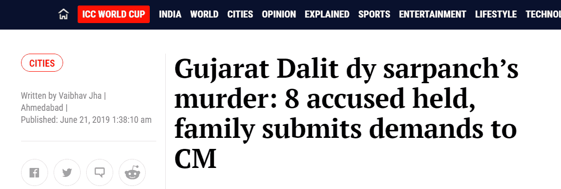 दुसरी घटना राजकोट मे दलित युवान की हत्या जाहेर मे की गई