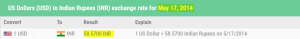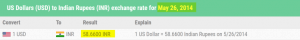 While the exchange rate of USD to INR on May 26, 2014, the day Narendra Modi was sworn as the Prime Minister of India, was 58.66.
