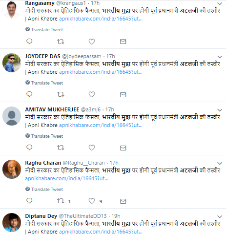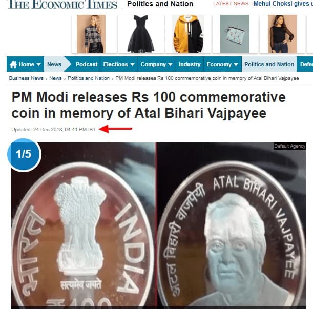 Misinformation claiming the launch of new currency notes featuring late PM Atal Bihari Vajpayee has been circulating since December last year, even before the government released the Rs 100 commemorative coin. The apnikhabre article itself was published on December 13, 2018. Another shoddy website livebavaal had also published an article on the identical topic that same day.