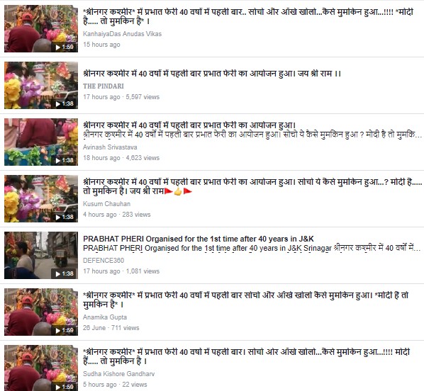 It has also been shared on WhatsApp with a Gujarati text that says – “શ્રીનગર નીગલીઓ માં 40 વર્ષ બાદ પહેલી વાર પ્રભાત ફેરી નીકળી છે.આ..જ બદલતા ભારત ની તસ્વીર છે. (Srinagar citizens take out Prabhat Pheri for the first time in 40 years. This is the face of a changing India.)”
