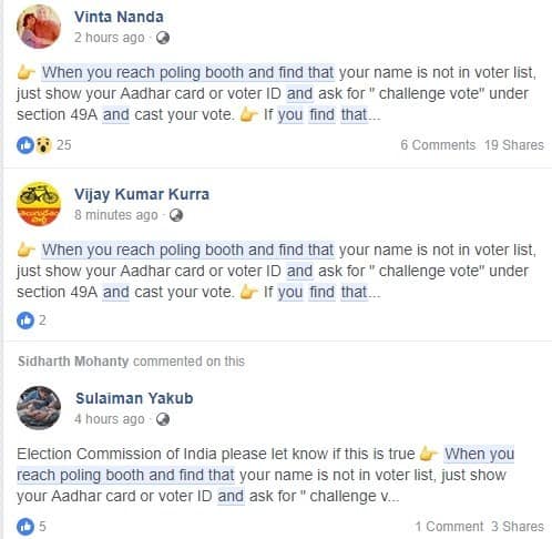 False Claim: Voters Can Ask for ‘Challenge Vote’ If Name is Missing from Electoral Roll