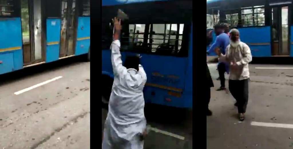 A video shared by several social media users shows a mob vandalising a public bus by smashing its windows with bricks. It is being claimed that the incident occurred in Mumbai when an auto driver, angered with the recent fare drop for BEST buses running between BKC and station, wrecked a bus after Friday’s Namaaz.