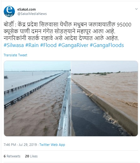 Sakal, a Marathi-daily based in Pune, tweeted the images with a claim that there was heavy rainfall in the cities of union territories like Dadra and Nagar Haveli and Daman and Diu.