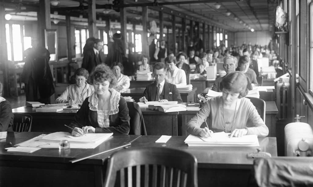 This is not the first time mental labour has gained new recognition in a changing employment landscape. A century ago, a similar transformation produced another new cognitive category. Concerns about the future of work led to a re-appraisal of the difficulty of existing jobs. Specifically, a growing perception that new technologies threatened manual labour on farms and in factories led some to look to more sedentary positions – in offices and at desks – as the way of the future for those displaced.