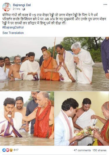 Alt News found that the narrative circulated with the video of Jagan Mohan Reddy is false. It is an old video from August 2016. Jagan Mohan Reddy had performed ‘Homam’, a Hindu ritual, in Rishikesh for securing special category status for the state.