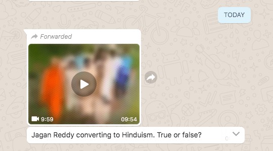 The above message was posted by an individual Facebook user on May 25, with a video of YSR Congress chief Jagan Mohan Reddy. It is being claimed that Reddy, who is a Christian by birth, has converted to Hinduism. Many other social media users on Facebook and WhatsApp have shared the video with an identical claim. “*Breaking news: Jagan Mohan Reddy converts from Christianity to Hinduism.* “, posted umpteen users with the same video.