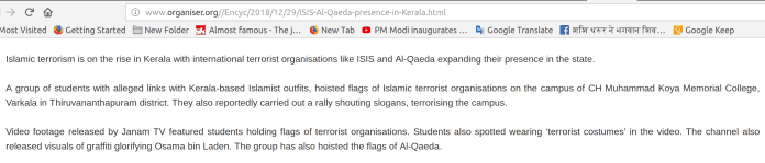 An article was published by The Organiser, the mouthpiece of the RSS. It was mainly based on the Janam TV report and claimed that a group of students who are allegedly linked with ‘Kerala-based Islamist outfits’ had hoisted flags of ‘Islamic terrorist organisations’.