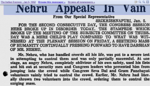 The January 6, 1962 edition of The Indian Express has an article titled – “Open Session Adjourns Amidst Disorder. Crowd Rush To Dias, Many Swoon. Nehru Appeals In Vain.”