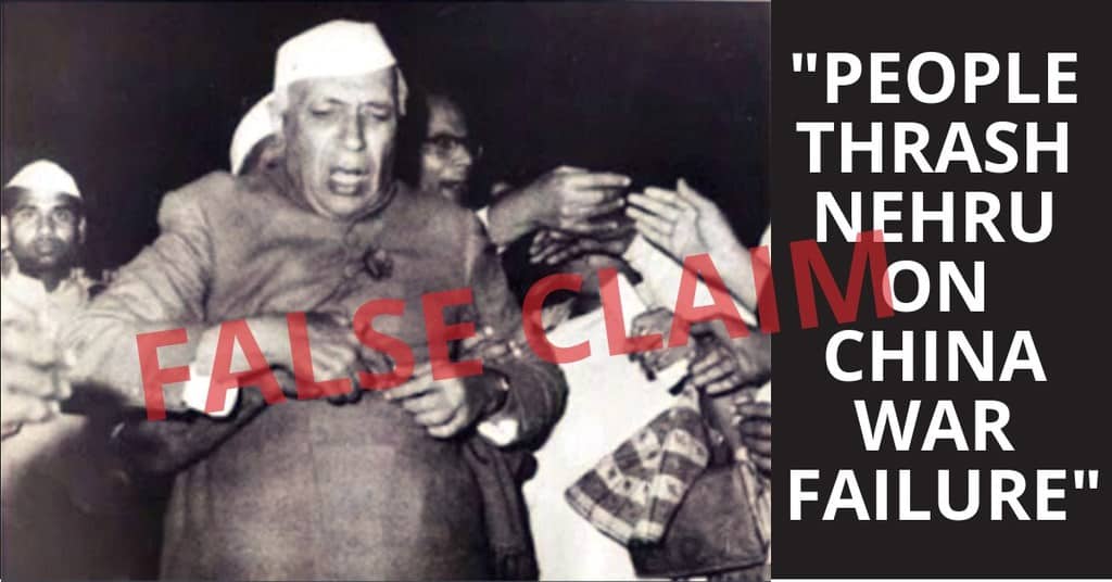 Recently, an image of Jawaharlal Nehru was shared by a few users on social media, suggesting that the first Prime Minister of India was thrashed by a mob after “failure on China war” in 1962.