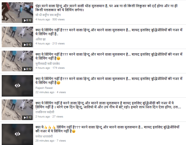 A video shared by several social media users claimed to depict the lynching of a Hindu man by members of the Muslim community. “मरने वाला हिन्दू और मारने वाला मुसलमान है… शायद इसलिए बुद्धिजीवियों की नजर में ये लिंचिंग नहीं है (The one who died is Hindu and the one who killed him is Muslim. Perhaps this is why intellectuals did not see this lynching.)” was the message accompanying the video. It was shared by numerous individuals on Facebook.