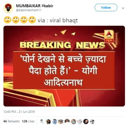 2. “Watching porn leads to reproduction of more children”: False quote ascribed to Yogi Adityanath