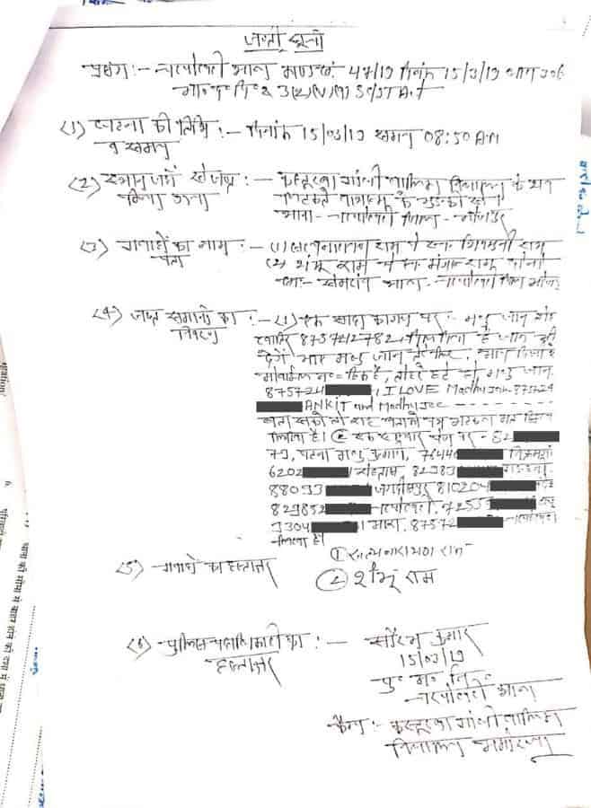 He adds, “The police showed us two papers. On one, eight-ten mobile numbers had been jotted down and on the second, there was a letter addressed to a girl named Madhu. This is the paper that the police is using to save the accused.”