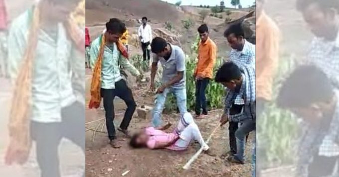 A video where a tribal woman from Madhya Pradesh was brutally beaten with sticks by her family members is viral on social media with false claims. The incident had occurred on June 25 in Dhar district where the 21-year-old was reportedly thrashed for eloping with a Dalit man and refusing to marry a man from her community.