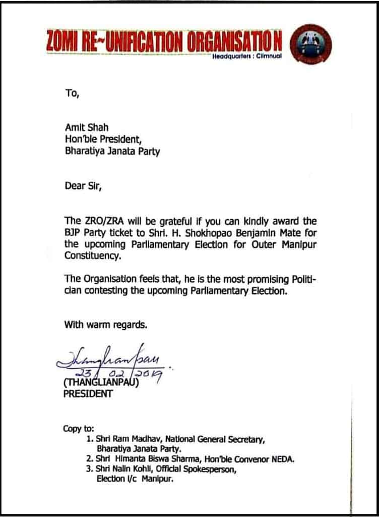 Previously, two Manipur insurgent groups— Zomi Re-unification Organisation (ZRO) and Kuki National Organisation (KNO) (KNA is the armed wing of KNO) — in separate letters had requested the BJP party president Amit Shah to give its tickets to the insurgents’ favoured candidate HS Benjamin Mate for the outer Manipur parliamentary seat. The BJP had obliged the request, News18 reported.