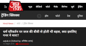 “उसने हिन्दू धर्म को त्याग कर ईसाई धर्म अपनाया था. बताया जा रहा है कि धार्मिक बातों पर जज की पत्नी के साथ उसकी बहस होती थी. पुलिस हिरासत में भी महिपाल कह रहा था कि धर्म परिवर्तन को लेकर जज की पत्नी उसे परेशान करती थी. (He surrendered Hinduism and embraced Christianity. It is being told that he used to have arguments with the judge’s wife on religious matters. Even in police custody, Mahipal said that the judge’s wife used to trouble him on the matter of religious conversion),” reported Aaj Tak.