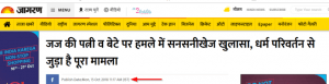 Immediately after establishing a link between Mahipal and his ‘Christian’ leaning, Dainik Jagran connected it to the murder. Umbrellaed under the sub-heading “was pressurising Judge’s wife and son to religiously convert”, the report narrated that Judge Kant’s wife Ritu and son Dhurv opposed to Mahipal’s religious impositions which led him to behave indecently with them and get fits of rage. “इसी वजह से आरोपी ने रेणु और उनके बेटे ध्रुव को शनिवार को गुरुग्राम के सेक्टर 49 स्थित आर्केडिया मार्केट में गोली मार दी। (For this reason the accused shot at Renu (Ritu) and her son Dhruv on Saturday at Arcadia market in Gurugram sector 49),” declared Dainik Jagran.