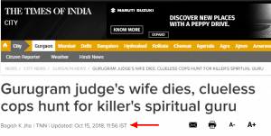 The Times of India also extensively covered the crime. In the report where the media organisation talked about Mahipal’s religious leanings, the title of the article itself explicitly mentioned that the cops were “clueless” and searched for the accused’s spiritual guru. This report was published on October 15, the same day Dainik Jagran, Dainik Bhaskar and One India declared fanatic evangelism as the motive behind the murder.