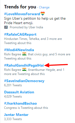 Since the early hours of February 13, a certain Twitter hashtag gained substantial momentum to share space with the top trends of the day on the micro-blogging website. #RahulGandhiPagalHai or ‘Rahul Gandhi is mad’ transformed into a top trend after multiple users began posting similar tweets with the said hashtag.