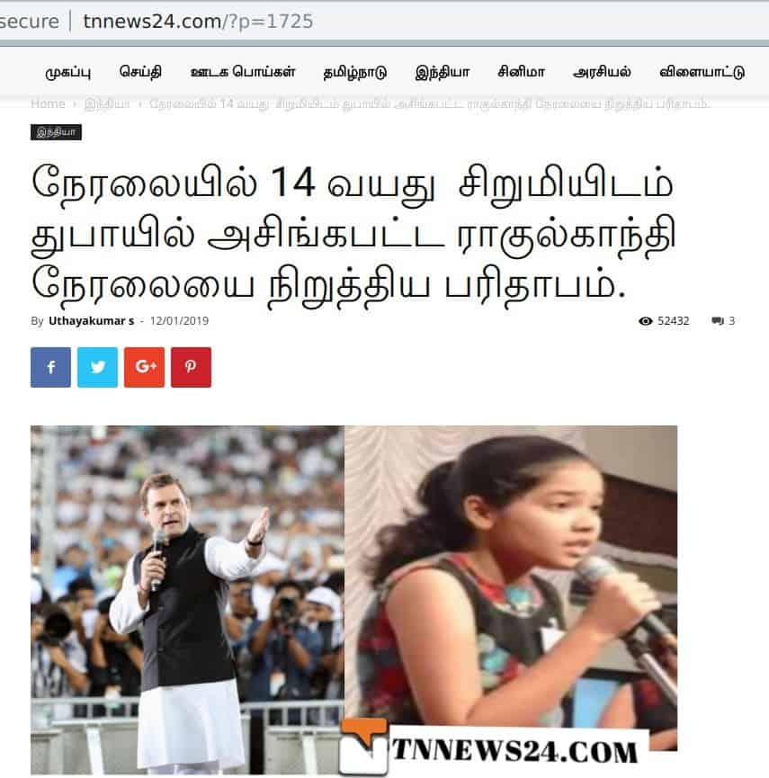 My Nation Spreads Fake News About ‘Rahul Gandhi Stumped by a 14-year-old Girl’ in Dubai