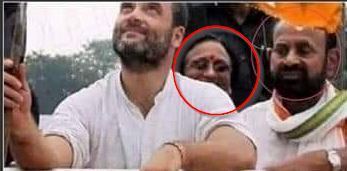 We did a YouTube search with the keywords, “Rita Bahuguna Joshi Rahul Gandhi rally”, and found a video of a Kisan Yatra rally in Congress president Rahul Gandhi and this unidentified person had participated.