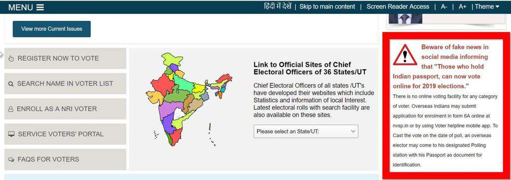 This was also reiterated by the spokesperson of ECI and on the official website after rumours about online voting facility started circulating on social media.