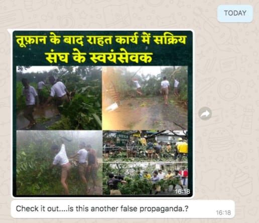 Old images of RSS relief work are often circulated on social media as a recent event. A similar pattern was observed last year during Kerala floods.