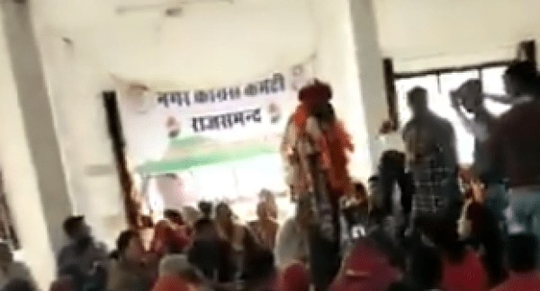 In one watches the video carefully, a banner placed on the stage reads – ‘Nagar Congress Committee Rajsamand’.