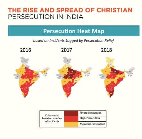 The report has been compiled using data obtained from Persecution Relief’s State and District Coordinators, Volunteers and staff across 29 states. Upon receiving information, persecuted persons are contacted, “interviews are conducted to establish authenticity of the case; evidence of the incident in the form of FIRs, Photos, Videos etc. are reviewed and validated etc.”