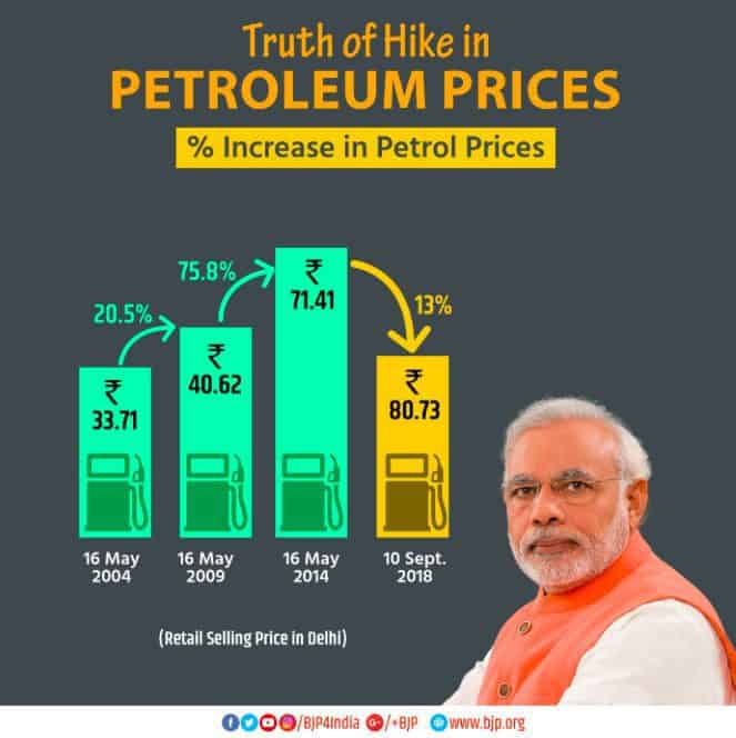 BJP’s twitter handle, in an attempt to attack opposition Congress party, shared fuel prices under UPA government versus Modi government.