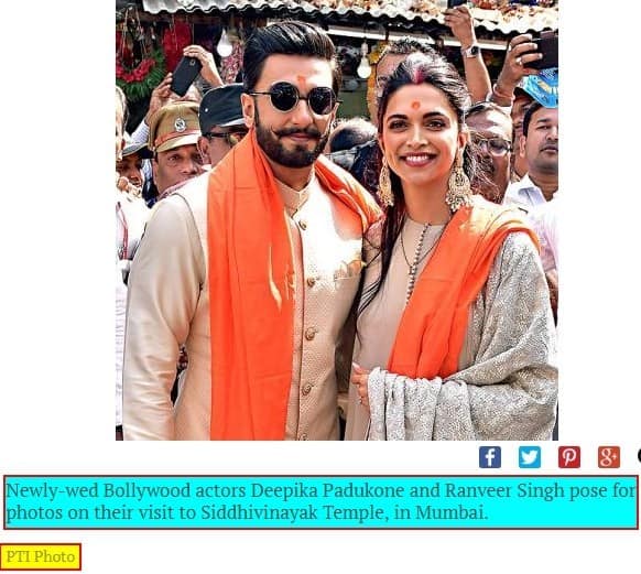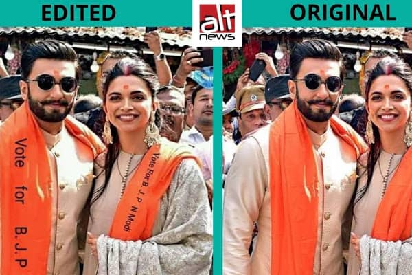 As expected, the image is digitally altered. Alt News reverse searched the image on Google and found the real photograph, which was clicked on November 30, 2018. Singh and Padukone had visited the Siddhivinaik Temple in Mumbai, where the picture was clicked. It was carried by several media publications.