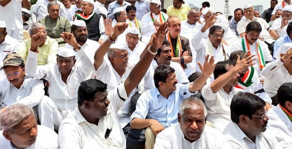 2.25 PM: “116 MLAs of Congress and JDS unitedly protest,” tweeted Dinesh Gundu Rao.