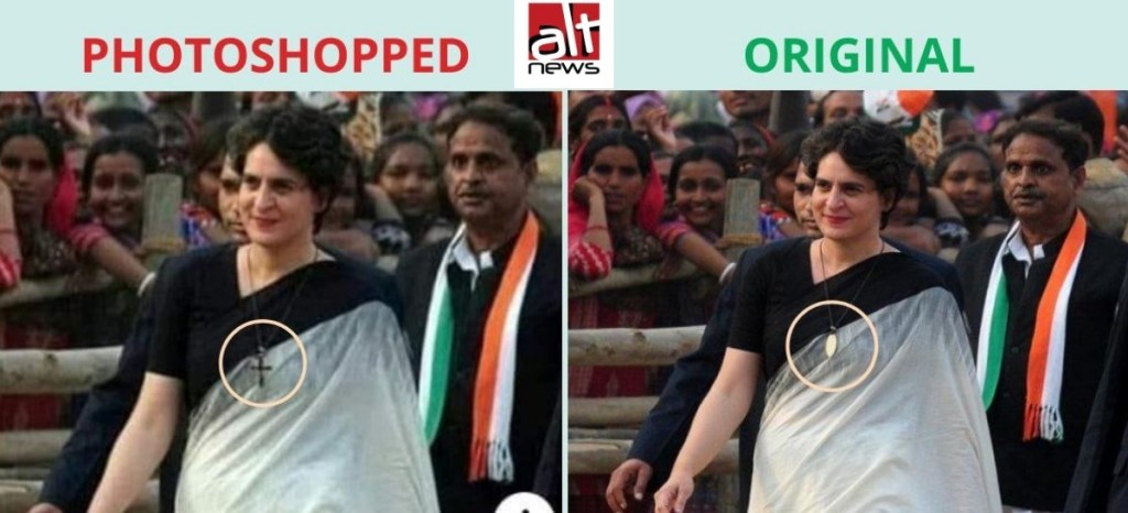 It may be reiterated that the photo of Priyanka Gandhi wearing a cross is photoshopped.