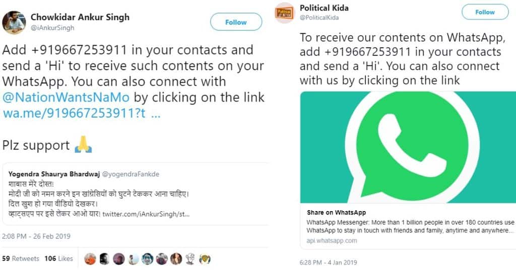 ‘Political Kida’ is run by Ankur Singh (@iankursingh), who previously used to run the page ‘Nation Wants Namo’ that was removed by Facebook in its recent takedown of pages involved in “inauthentic behaviour”. ‘Political Kida’ is now promoted using the same phone number associated with ‘Nation Wants Namo.’ Ankur Singh has tweeted the phone number multiple times.
