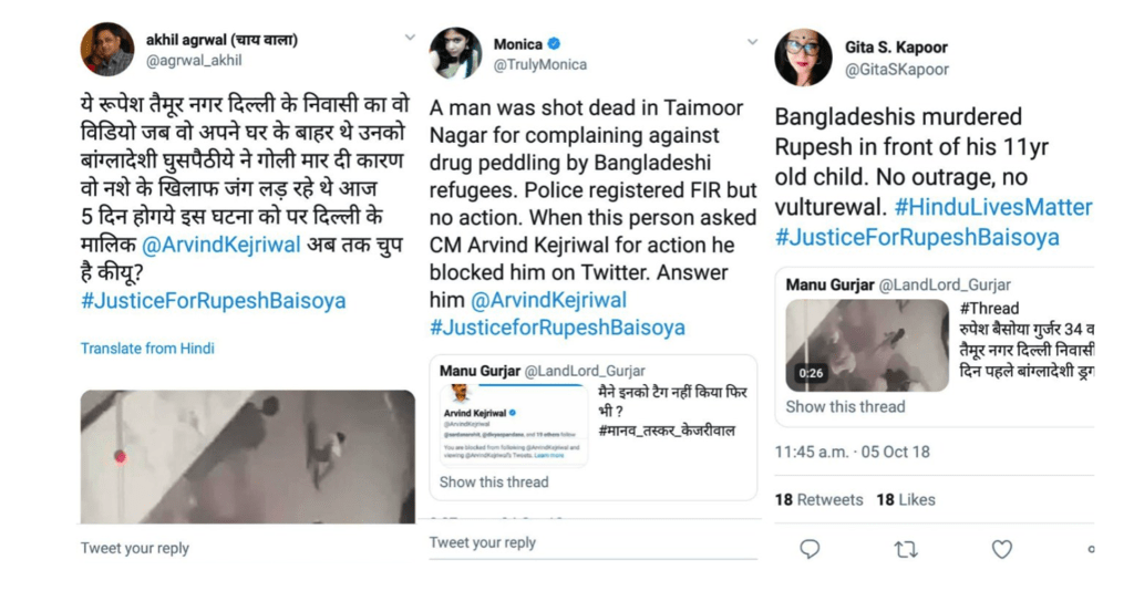 In the afternoon of October 4, Rebel AAP MLA Kapil Mishra alleged in a tweet that a man named Rupesh Baisoya was murdered in Delhi by “Bangladeshi drug mafia”.