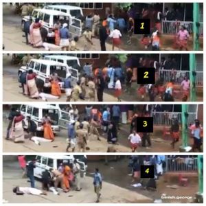 The woman shown in the picture lying injured was NOT attacked by Kerala police. This becomes obvious once the footage of the incident is seen.