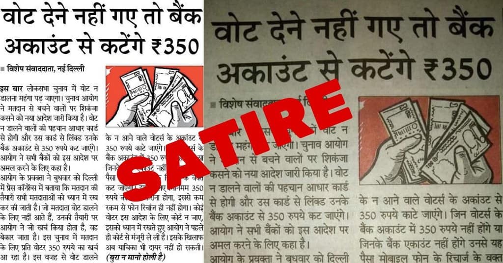 Satirical Newspaper Clipping About a Penalty of Rs 350 for Not Voting Goes Viral